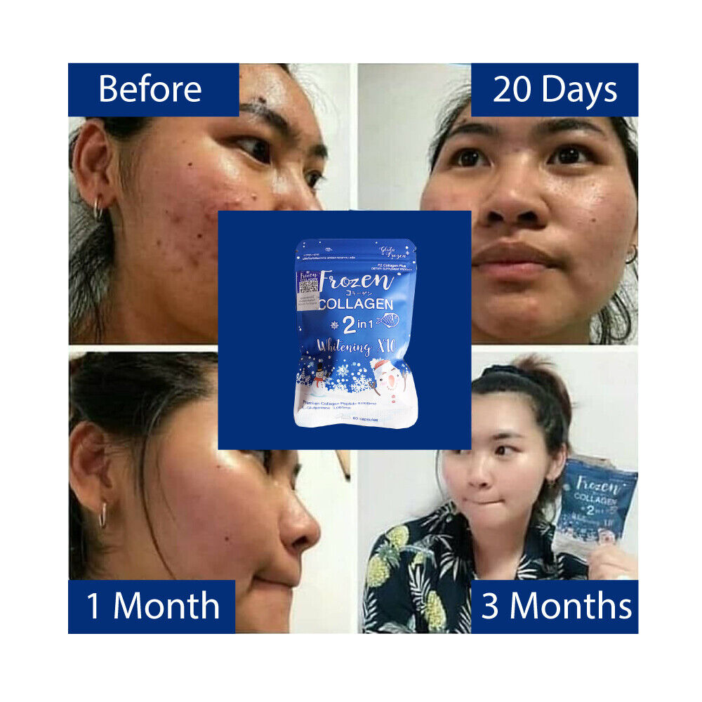 Frozen Collagen 2 in 1 Whitening Capsules are a powerful skin-brightening and anti-aging supplement formulated with premium-grade collagen and L-glutathione. This unique blend helps reduce dark spots, hyperpigmentation, and uneven skin tone while enhancing skin elasticity and hydration. With regular use, it promotes a youthful, radiant, and flawless complexion.